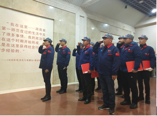 第一師范紀念館序廳,參加本次活動的奧吉娜集團黨員重溫入黨誓詞。